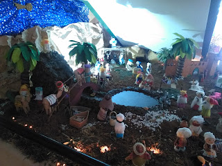 Nuestro cole está precioso como todos los años. Del Belén se han encargado los papás y mamás y cada año se superan más si cabe. Este año han montado un Belén reciclado y así nos lo explicaron.
